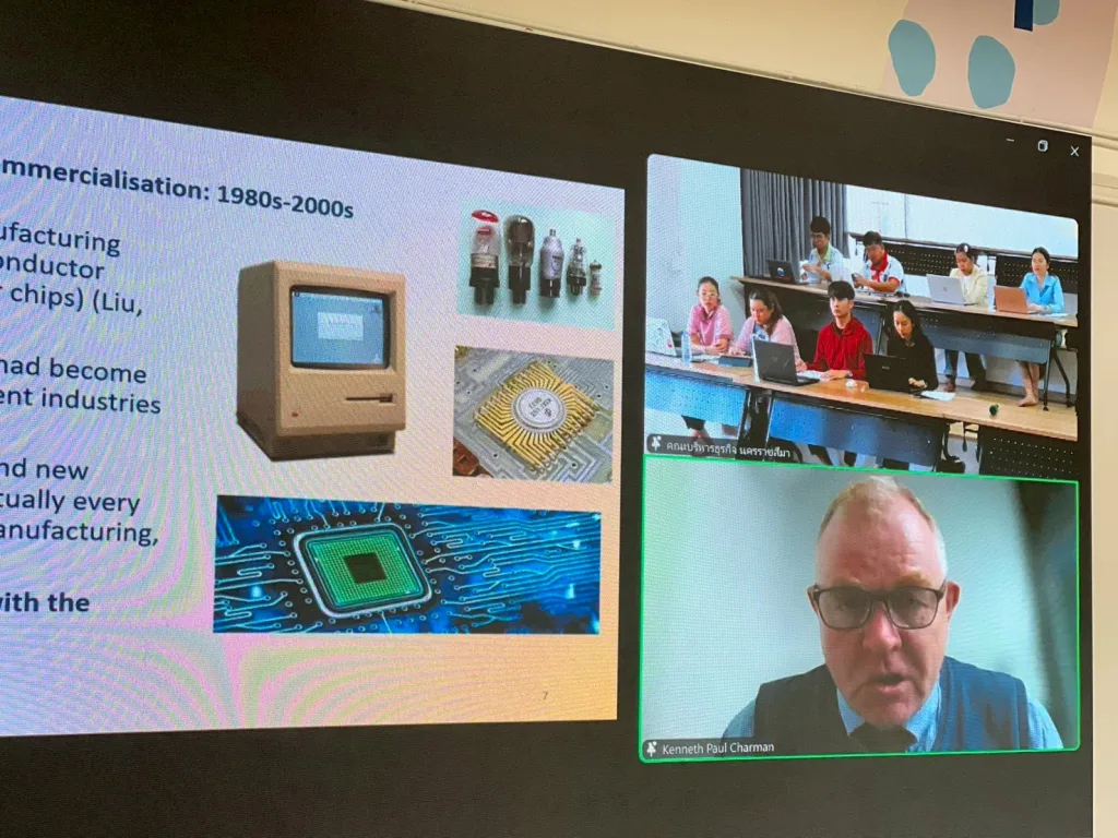 วันที่ 21 กันยายน 2568 อาจารย์ ดร. อนิรุธ พิพัฒน์ประภา คณบดีคณะบริหารธุรกิจ และ ผู้ช่วยศาสตราจารย์ ดร.พลานุช คงคา ผู้ช่วยอธิการบดี เชิญ Dr. Kenneth Paul Charman จาก CamEd Business School เครือสมาชิก MOC ประเทศสหรัฐอเมริกา บรรยายในหัวข้อ Clusters and competitiveness: Taiwan Semiconductors Industry” ให้นักศึกษา MBA รุ่น 17 คณะบริหารธุรกิจ และเชิญนักศึกษาด้านบริหารธุรกิจจากทุกวิทยาเขต และ 9 มทร. ร่วมฟังการบรรยายพิเศษในครั้งนี้ ซึ่งการบรรยายพิเศษครั้งนี้เป็นส่วนหนึ่งของรายวิชาการจัดการเชิงกลยุทธ์เพื่อความได้เปรียบทางการแข่งขันที่ยั่งยืน โดยอาจารย์ ดร.อนิรุธ พิพัฒน์ประภา คณบดีคณะบริหารธุรกิจ กล่าวเพิ่มเติมว่า จากการที่มหาวิทยาลัยเทคโนโลยีราชมงคลอีสานได้เป็นเครือข่ายของสถาบัน Microeconomics of Competitiveness ประเทศสหรัฐอเมริกา ทางคณะฯ ได้นำแนวทางจากสถาบันฯ มาใช้ในการจัดการเรียนการสอนในรายวิชากลยุทธ์ รวมถึงเชิญนักศึกษาระดับบัณฑิตจากทุกวิทยาเขตเข้าฟังอย่างต่อเนื่อง อีกทั้งเป็นส่วนหนึ่งของการเสริมสร้างความเป็นนานาชาติให้กับมหาวิทยาลัยอีกด้วย