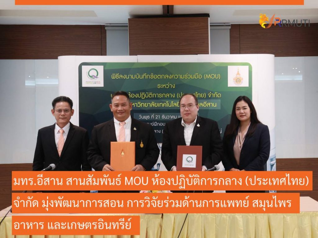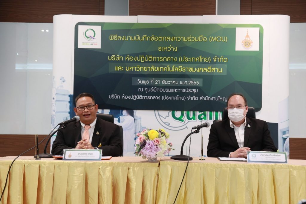 ทั้งนี้ ความร่วมมือทางวิชาการระหว่าง บริษัท ห้องปฏิบัติการกลาง (ประเทศไทย) จำกัด กับ มหาวิทยาลัยเทคโนโลยีราชมงคลอีสาน เพื่อสร้างความร่วมมือทางวิชาการ สนับสนุนด้านการสอน หลักสูตรฝึกอบรมด้านวิจัยทางการแพทย์ สมุนไพร อาหาร เกษตรอินทรีย์ การตรวจรองรับระบบ การสอบเทียบเครื่องมือวัด รวมทั้งเป็นเครือข่ายในการรับตัวอย่าง และการแลกเปลี่ยนข้อมูลทางวิชาการ