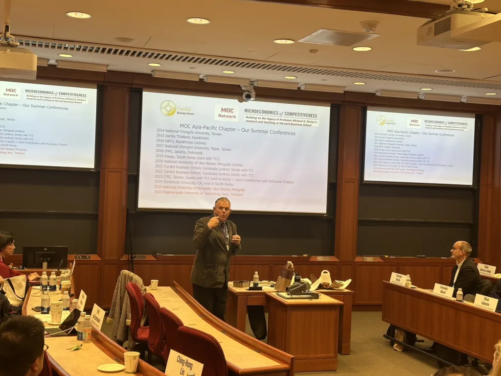 วันที่ 18-22 ธันวาคม 2567 รองศาสตราจารย์ ดร.โฆษิต ศรีภูธร อธิการบดี มหาวิทยาลัยเทคโนโลยีราชมงคลอีสาน มอบหมายให้อาจารย์ ดร.อนิรุธ พิพัฒน์ประภา คณบดีคณะบริหารธุรกิจ เข้าร่วมประชุม การประชุมใหญ่มหาวิทยาลัยเครือข่ายสถาบัน Microeconomics of Competitiveness (MOC) ณ Harvard Business School ประเทศสหรัฐอเมริกา ในการประชุมครั้งนี้ทาง อาจารย์ ดร.อนิรุธ พิพัฒน์ประภา คณบดีคณะบริหารธุรกิจ มทร.อีสาน ได้นำเสนอถึงผลการดำเนินงานของการนำแนวคิดทางการจัดการกลยุทธ์เพื่อสร้างความสามารถทางการแข่งขันของ Professor Michael Porter มาใช้ในการบูรณาการวางแผนยุทธศาสตร์กลุ่มจังหวัดภาคตะวันออกเฉียงเหนือตอนล่าง1 เป็นระยะเวลา 2 ปีต่อเนื่อง การเชิญอาจารย์จากมหาวิทยาลัยเครือข่ายบรรยายพิเศษให้กับนักศึกษาระดับปริญญาโททั้ง 4 วิทยาเขต และการพัฒนาคลัสเตอร์ไหมจนได้รับทุนสนันจากทางรัฐบาล และการใช้สื่อการสอนด้านกลยุทธ์เพื่อการแข่งขันของ MOC ในการสอนระดับปริญญาตรี พร้อมกันนี้ได้นำเสนอคณะบริหารธุรกิจ มหาวิทยาลัยเทคโนโลยีราชมงคลอีสาน ในการเป็นผู้จัดงานประชุม Asian and Pacific Chapter International Conference, Thailand และทางที่ประชุมมีมติเห็นชอบให้เป็นเจ้าภาพจัดการประชุมดังกล่าวในปี 2026 ต่อจากประเทศมองโกเลีย