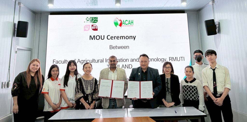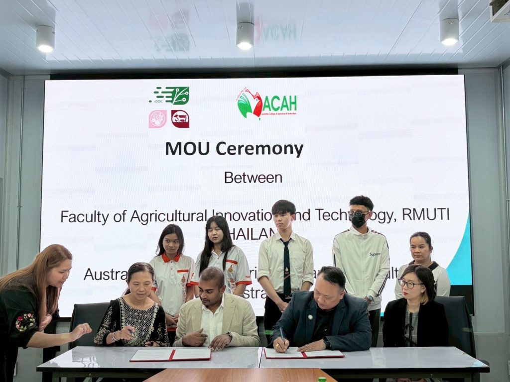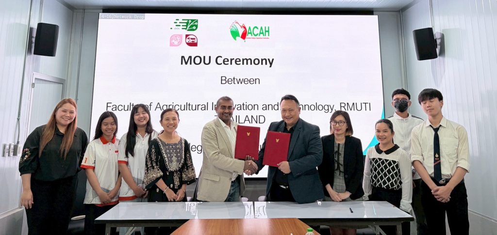 พิธีลงนามดังกล่าวได้รับเกียรติจาก ผู้ช่วยศาสตราจารย์ ดร.เฉลิมพล เยื้องกลาง คณบดีคณะนวัตกรรมและเทคโนโลยีการเกษตร มทร.อีสาน และ Mr. Alvin Gopal ประธานเจ้าหน้าที่บริหาร ACAH ร่วมเป็นผู้ลงนาม โดยมีวัตถุประสงค์สำคัญเพื่อส่งเสริมให้นักศึกษาระดับปริญญาตรีได้รับประสบการณ์ตรงจากแหล่งเรียนรู้ด้านเทคโนโลยีและการบริหารธุรกิจการเกษตรที่ได้มาตรฐานระดับสากล