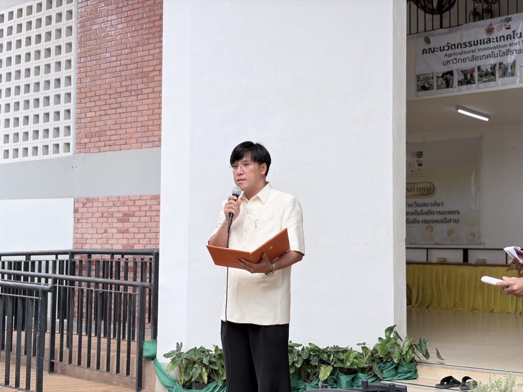 วันที่ 24 มีนาคม 2569 คณะนวัตกรรมและเทคโนโลยีการเกษตร มหาวิทยาลัยเทคโนโลยีราชมงคลอีสาน จัดโครงการทำบุญเนื่องในโอกาสวันคล้ายวันสถาปนาคณะฯ ประจำปี 2569 ณ อาคารปฏิบัติการนวัตกรรมและเทคโนโลยีการเกษตร ศูนย์การศึกษาหนองระเวียง เพื่อความเป็นสิริมงคลและสืบสานรำลึกถึงความกตัญญูต่อผู้มีพระคุณในการจัดตั้งคณะฯ ในการนี้ รองศาสตราจารย์ ดร.โฆษิต ศรีภูธร อธิการบดีมหาวิทยาลัยเทคโนโลยีราชมงคลอีสาน มอบหมายให้ อาจารย์สรวิศ ต.ศิริวัฒนา รองอธิการบดีฝ่ายกิจการนักศึกษาและศิษย์เก่าสัมพันธ์ ให้เกียรติเป็นประธานในพิธีจุดธูปเทียนบูชาพระรัตนตรัย โดยมี ผู้ช่วยศาสตราจารย์ ดร.เฉลิมพล เยื้องกลาง คณบดีคณะนวัตกรรมและเทคโนโลยีการเกษตร พร้อมด้วยคณะผู้บริหาร หัวหน้าสาขา คณาจารย์ บุคลากร และนักศึกษากว่า 100 คน เข้าร่วมพิธีอย่างพร้อมเพรียงกัน