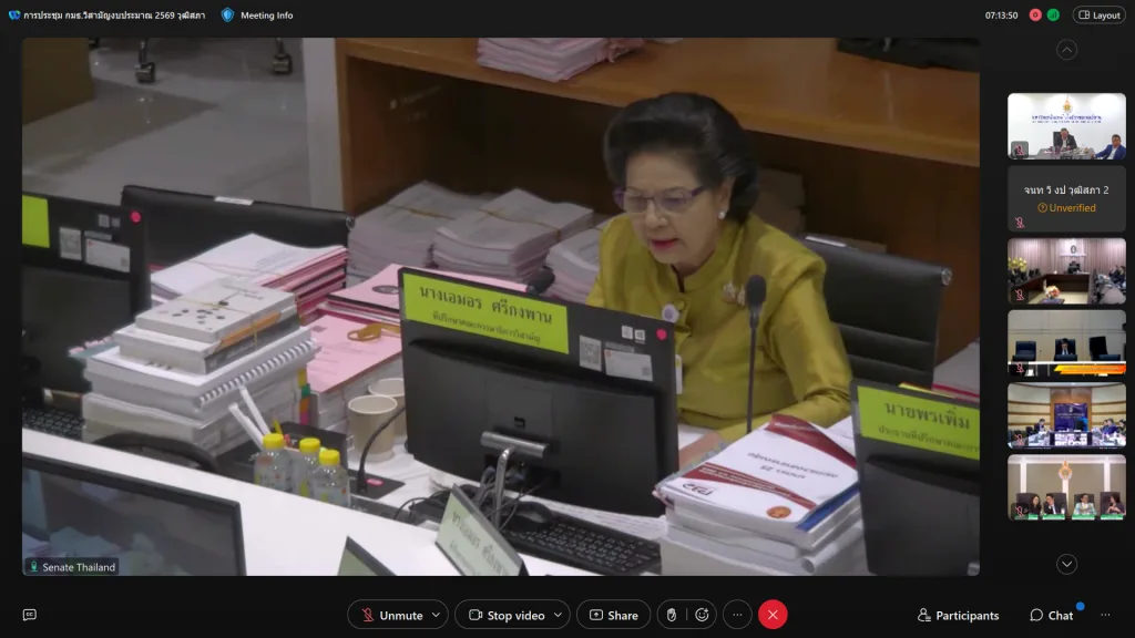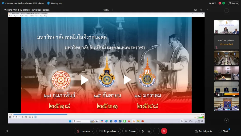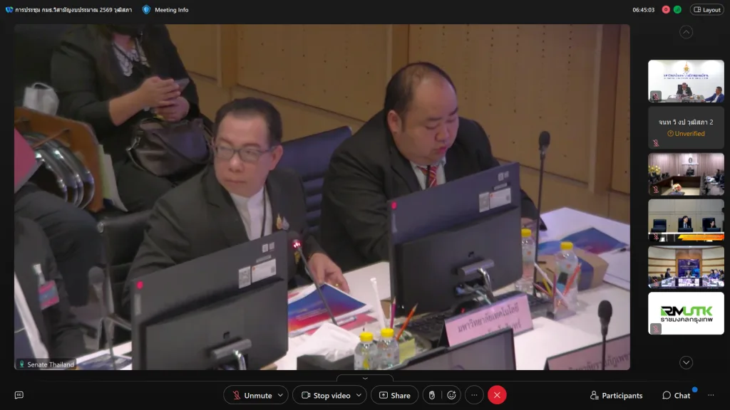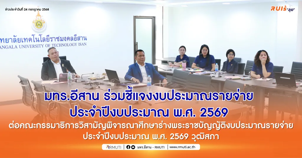 วันที่ 23 กรกฎาคม 2568 เวลา 13.00-16.00 น. มหาวิทยาลัยเทคโนโลยีราชมงคลอีสาน เข้าร่วมชี้แจงงบประมาณรายจ่าย ประจำปีงบประมาณ พ.ศ. 2569 ต่อคณะกรรมาธิการวิสามัญพิจารณาศึกษาร่างพระราชบัญญัติงบประมาณรายจ่ายประจำปีงบประมาณ พ.ศ. 2569 วุฒิสภา นำโดย รองศาสตราจารย์ ดร.โฆษิต ศรีภูธร อธิการบดี มทร.อีสาน พร้อมด้วย ผู้ช่วยศาสตราจารย์ ดร.เอนก เจริญภักดี รองอธิการบดีฝ่ายยุทธศาสตร์ นโยบายและแผน นางสุมัธยา กิจงาม รักษาการในตำแหน่งผู้อำนวยการกองนโยบายและแผน และบุคลากรงานงบประมาณและติดตามประเมินผล กองนโยบายและแผน เข้าร่วมประชุม ผ่านระบบการประชุมอิเล็กทรอนิกส์ Webex ณ ห้องประชุม แคนา 9 ชั้นลอย อาคารสำนักงานอธิการบดี มหาวิทยาลัยเทคโนโลยีราชมงคลอีสาน นครราชสีมา