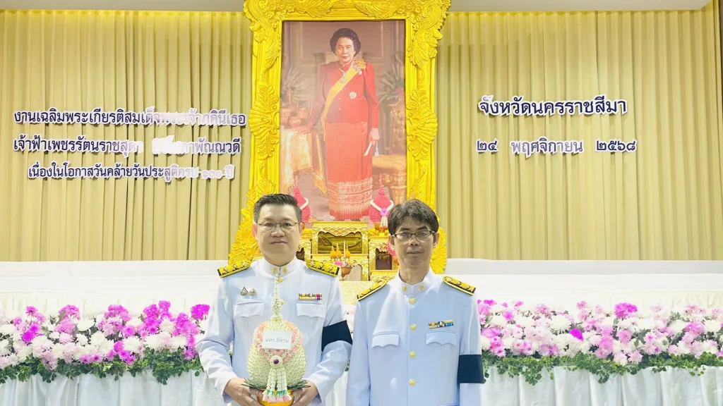พิธีในครั้งนี้ได้รับเกียรติจาก นายอนุพงศ์ สุขสมนิตย์ ผู้ว่าราชการจังหวัดนครราชสีมา เป็น ประธานในพิธี นำหัวหน้าส่วนราชการ ข้าราชการและผู้บริหารหน่วยงานต่าง ๆ ในจังหวัดนครราชสีมา ร่วมแสดงความเคารพและน้อมรำลึกในพระมหากรุณาธิคุณอันล้นพ้นของพระองค์ที่ทรงมีต่อประเทศชาติ โดยเฉพาะด้านการศึกษา ซึ่งพระองค์ทรงทุ่มเทพระวรกายในการส่งเสริมการเรียนรู้ การสนับสนุนงานวิจัย และการขยายโอกาสให้เยาวชนไทยเข้าถึงการศึกษาที่มีคุณภาพอย่างเสมอภาค