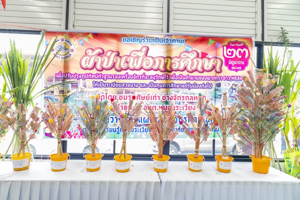 ทั้งนี้ การจัดพิธีทอดผ้าป่าสามัคคีในครั้งนี้ มีวัตถุประสงค์เพื่อเป็นทุนการศึกษาให้กับรุ่นน้องนักศึกษา และต้องการปรับปรุงพื้นที่สำหรับจัดงาน Heavy Come Home และพื้นที่สำหรับทำกิจกรรมของนักศึกษา ทำฐานรองเครื่องจักรเก่าที่จะอนุรักษ์ไว้ให้เป็นระเบียบเรียบร้อย ทั้งในด้านสถานที่และเครื่องจักร คงความเป็น อัตลักษณ์ เอกลักษณ์ และเป็นแหล่งเรียนรู้เพื่อผลิตนักศึกษาช่างจักรกลหนักให้สามารถสร้างรายได้ดูแลครอบครัวรวมทั้งพัฒนาประเทศชาติต่อไป