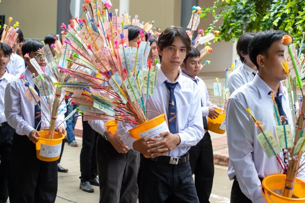 วันที่ 23 มิถุนายน 2567 ชมรมศิษย์เก่าจักรกลหนัก มหาวิทยาลัยเทคโนโลยีราชมงคลอีสาน จัดพิธีทอดผ้าป่าสามัคคีเพื่อการศึกษาเพื่อปรับปรุงพื้นที่สำหรับทำกิจกรรมของนักศึกษา และทำฐานรองเครื่องจักรเก่าที่จะอนุรักษ์ไว้ให้เป็นระเบียบและสวยงาม และเป็นทุนการศึกษาให้กับรุ่นน้อง ณ ศูนย์การศึกษาหนองระเวียง มทร.อีสาน นครราชสีมา โดยมี พระครูวิสุทธิ์เขมคุณ เจ้าคณะตำบลหนองระเวียง เจ้าอาวาสวัดโตนด เป็นประธานฝ่ายสงฆ์และรองศาสตราจารย์ โฆษิต ศรีภูธร อธิการบดี มทร.อีสาน เป็นประธานฝ่ายฆราวาส โดยมีคณะผู้บริหาร คณาจารย์ เจ้าหน้าที่มหาวิทยาลัย และนักศึกษา มทร.อีสาน เข้าร่วมพิธีเจริญพระพุทธมนต์ โดยพระภิษุสงฆ์จำนวน 9 รูป พิธีถวายภัตตาหารเพลแด่พระภิกษุสงฆ์ และพิธีถวายองค์ผ้าป่า ซึ่งมียอดเงินจากการทำบุญทั้งสิ้น 301,445.99 บาท