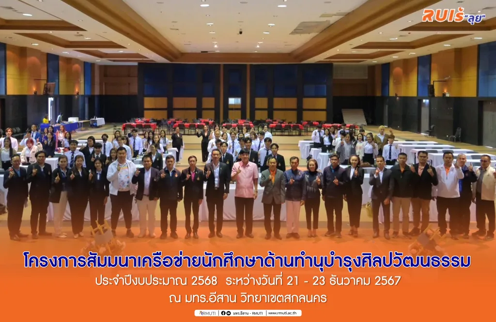 โครงการสัมมนาเครือข่ายนักศึกษาด้านทำนุบำรุงศิลปวัฒนธรรม ประจำปีงบประมาณ 2568  ระหว่างวันที่ 21 – 23 ธันวาคม 2567  ณ มทร.อีสาน วิทยาเขตสกลนคร