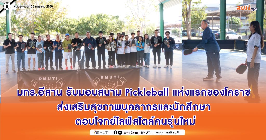วันที่ 24 มกราคม 2569 รองศาสตราจารย์ ดร.โฆษิต ศรีภูธร อธิการบดีมหาวิทยาลัยเทคโนโลยีราชมงคลอีสาน พร้อมด้วย ผู้ช่วยศาสตราจารย์นัฐวุฒิ ทิพย์โยธา รองอธิการบดีฝ่ายส่งเสริมและพัฒนากิจการมหาวิทยาลัย, อาจารย์สรวิศ ต.ศิริวัฒนา รองอธิการบดีฝ่ายกิจการนักศึกษาและศิษย์เก่าสัมพันธ์ อาจารย์ธนินทร์ ระเบียบโพธิ์ ผู้ช่วยอธิการบดี, ผู้ช่วยศาสตราจารย์ญาดา พรภักดี รองคณบดีฝ่ายพัฒนานักศึกษา คณะวิทยาศาสตร์และศิลปศาสตร์ นายวัฒนศักดิ์ สุขมากสิน หัวหน้างานกีฬาและกิจกรรมนักศึกษา กองพัฒนานักศึกษา มทร.อีสาน พร้อมด้วยบุคลากรและนักศึกษา มทร.อีสาน นครราชสีมา ให้การต้อนรับ คุณพทธวรรษ วิลัยหงส์ ประธาน บริษัท เอลซี่ คอร์ปอเรชั่น จำกัด คุณบุญส่ง กุณามา กรรมการผู้จัดการ บริษัท เอลซี่ คอร์ปอเรชั่น จำกัด พร้อมด้วย คุณวัธนวัตร ต่ายชาวนา Acer Sport Co.,Ltd. ผู้แทนจำหน่ายอุปกรณ์ Joola อุปกรณ์พิคเคิลบอลและปิงปอง ระดับโลก และ คุณปิยทัศน์ สุรเสวี PPR Level 2 pickleball coach. ในโอกาสรับมอบ สนามกีฬา Pickleball แห่งแรกของโคราช พร้อมทั้งอุปกรณ์ กีฬา Pickleball จาก บริษัท เอลซี่ คอร์ปอเรชั่น จำกัด ณ ลานอเนกประสงค์ มทร.อีสาน นครราชสีมา