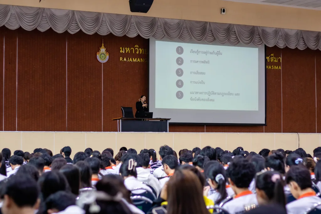 วันที่ 25 มิถุนายน 2568 มหาวิทยาลัยเทคโนโลยีราชมงคลอีสาน โดย รองศาสตราจารย์ ดร.โฆษิต ศรีภูธร อธิการบดี มทร.อีสาน มอบหมาย กองพัฒนานักศึกษา จัดโครงการปฐมนิเทศนักศึกษาหอพัก ประจำปีการศึกษา 2568 ณ หอประชุมวทัญญู ณ ถลาง โดยมีวัตถุประสงค์ของการดำเนินโครงการเพื่อเป็นการส่งเสริม พัฒนานักศึกษาให้เรียนรู้และสร้างเสริมประสบการณ์ด้านการอยู่ร่วมกับผู้อื่น การเคารพสิทธิการพึ่งพา การเสียสละ การแบ่งปัน และกฎเกณฑ์ ระเบียบ ข้อบังคับของสังคม และทราบข้อมูลการบริการด้านต่างๆ ได้อย่างถูกต้อง ทั้งนี้ได้รับเกียรติจาก อาจารย์สรวิศ ต.ศิริวัฒนา รองอธิการบดีฝ่ายกิจการนักศึกษาและศิษย์เก่าสัมพันธ์ และ นางสาวสุวรรณี ทนงสำโรง พลเสน รักษาราชการแทนผู้อำนวยการกองพัฒนานักศึกษากล่าวให้โอวาทและต้อนรับนักศึกษาทุกคนที่เข้าพักในหอพักของมหาวิทยาลัย ซึ่งเปรียบเสมือนบ้านหลังที่สองของทุกคน จากนั้นเป็นบรรยายให้ความรู้เกี่ยวกับการขอรับบริการด้านต่าง ๆ จากหอพักนักศึกษา การอยู่ร่วมกันกับผู้อื่น รวมถึงข้อห้าม – ข้อควรปฏิบัติในขณะที่พักอาศัยในหอพัก นักศึกษา มทร.อีสาน นครราชสีมา โดย นางสาวสุพรรณี ศรีรงค์ หัวหน้างานหอพักนักศึกษา ทั้งนี้มีผู้บริหาร บุคลากรกองพัฒนานักศึกษา และนักศึกษาเข้าร่วมโครงการจำนวนทั้งสิ้น 1,200 คน โดยเป็นนักศึกษาที่พักอาศัยภายในหอพักนักศึกษา มทร.อีสาน นครราชสีมา ชั้นปีที่ 1 และชั้นปีที่ 2