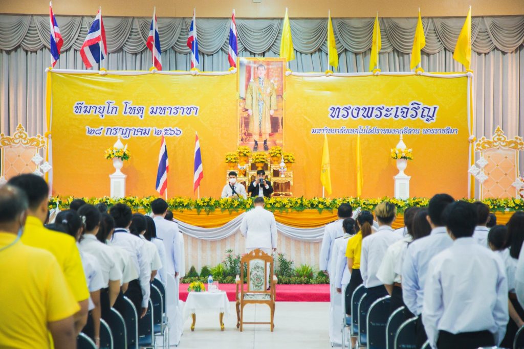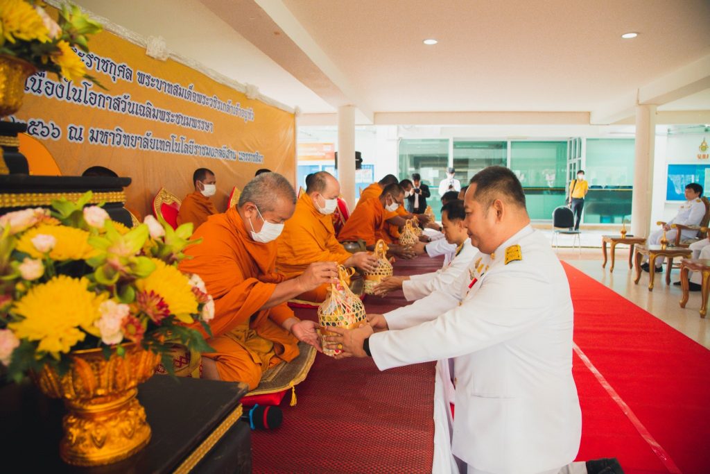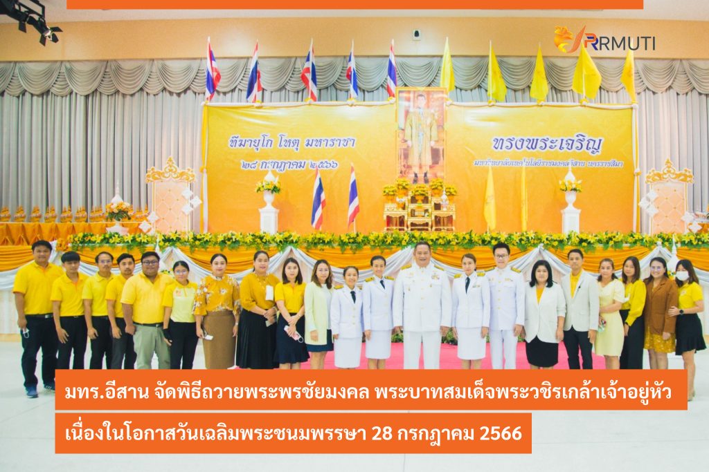 วันที่ 26 กรกฎาคม 2566 มหาวิทยาลัยเทคโนโลยีราชมงคลอีสาน โดย กองพัฒนานักศึกษา จัดพิธีทำบุญตักบาตรข้าวสาร-อาหารแห้ง และพิธีถวายพระพรชัยมงคล พระบาทสมเด็จพระวชิรเกล้าเจ้าอยู่หัว เนื่องในโอกาสมหามงคลวันเฉลิมพระชนมพรรษา 28 กรกฎาคม 2566 ณ หอประชุมวทัญญู ณ ถลาง มทร.อีสาน นครราชสีมา โดยมี รองศาสตราจารย์ ดร.โฆษิต ศรีภูธร อธิการบดีมหาวิทยาลัยเทคโนโลยีราชมงคลอีสาน เป็นประธานในพิธี โดยมี คณะผู้บริหารมหาวิทยาลัย จาก มทร.อีสาน วิทยาเขตขอนแก่น มทร.อีสาน วิทยาเขตสกลนคร มทร.อีสาน วิทยาเขตสุรินทร์ คณาจารย์ และนักศึกษา เข้าร่วมพิธีอย่างพร้อมเพรียงกัน โดยได้มีพิธีทำบุญตักบาตรข้าวสาร -อาหารแห้ง แด่พระสงฆ์ จำนวน 10 รูป พิธีถวายพานพุ่มเงิน พานพุ่มทอง ตามลำดับ และรองศาสตราจารย์ ดร.โฆษิต ศรีภูธร อธิการบดี มทร.อีสาน ประธานในพิธีได้เปิดกรวยดอกไม้ ถวายเครื่องราชสักการะ (พานพุ่มเงิน พานพุ่มทอง ) และกราบบังคมทูลถวายพระพรชัยมงคลแด่ พระบาทสมเด็จพระวชิรเกล้าเจ้าอยู่หัว ถวายความเคารพหน้าพระบรมฉายาลักษณ์ และร่วมกันร้องเพลงสรรเสริญพระบารมี เพลงสดุดีจอมราชา