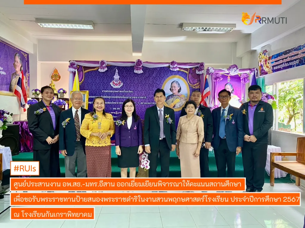 วันที่ 23 สิงหาคม 2567 ศูนย์ประสานงาน อพ.สธ. – มหาวิทยาลัยเทคโนโลยีราชมงคลอีสาน ออกเยี่ยมเยียนพิจารณาให้คะแนนสถานศึกษา เพื่อขอรับพระราชทานป้ายสนองพระราชดำริในงานสวนพฤกษศาสตร์โรงเรียน ประจำปีการศึกษา 2567 ณ โรงเรียนกันเกราพิทยาคม อำเภอโนนสูง จังหวัดนครราชสีมา โดยมี นายธานินทร์ สันคะนุช เจ้าหน้าที่งานในพระองค์ ระดับ 6 โครงการอนุรักษ์พันธุกรรมพืชอันเนื่องมาจากพระราชดำริฯ เป็นประธานคณะกรรมการ อาจารย์ ดร.กุณฑิกา บุญสุภาวงศ์ หัวหน้าศูนย์ประสานงาน อพ.สธ. มทร.อีสาน เป็นกรรมการ นายอุดม ล้อมวงศ์พานิช ที่ปรึกษาศูนย์ประสานงาน อพ.สธ. มทร.อีสาน เป็นกรรมการ และคณะทำงาน ประกอบไปด้วย รองศาสตราจารย์กมลทิพย์ กสิภาร์ นายอาคม หาญสงคราม ที่ปรึกษาศูนย์ประสานงาน อพ.สธ. มทร.อีสาน นายธีระวุฒิ มูลอาษา และนางสาววิภาวี จุ้ยแก้วพะเนา เจ้าหน้าที่ศูนย์ประสานงาน อพ.สธ. มทร.อีสาน