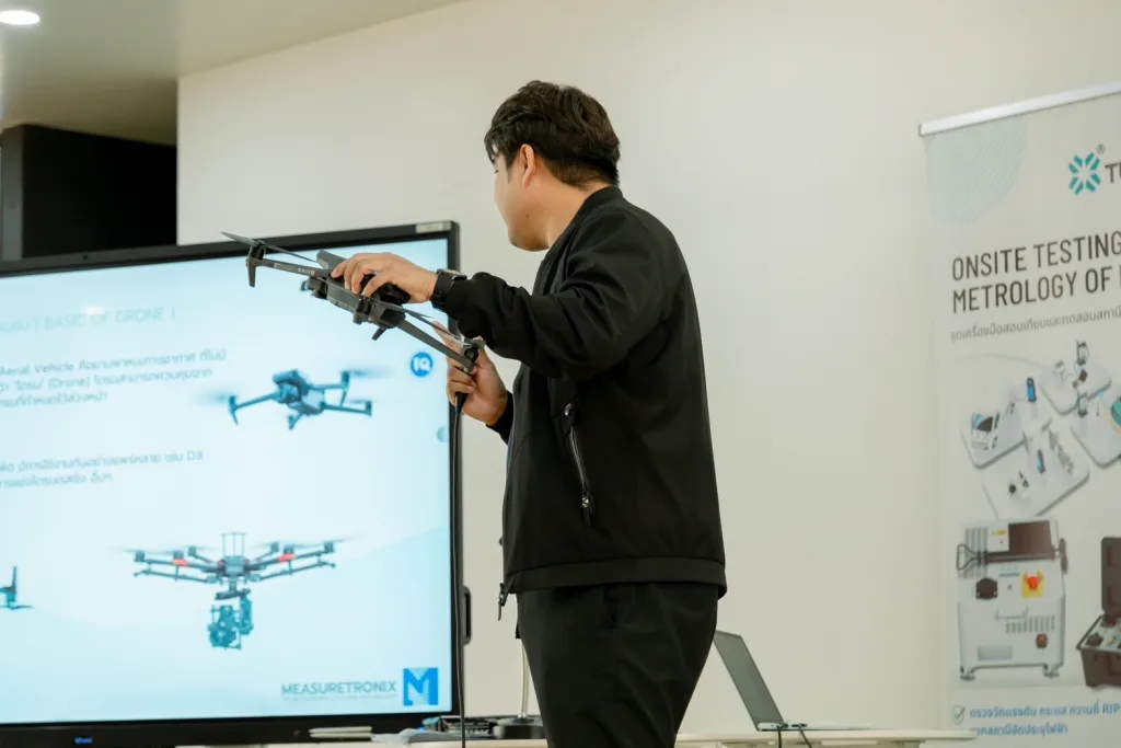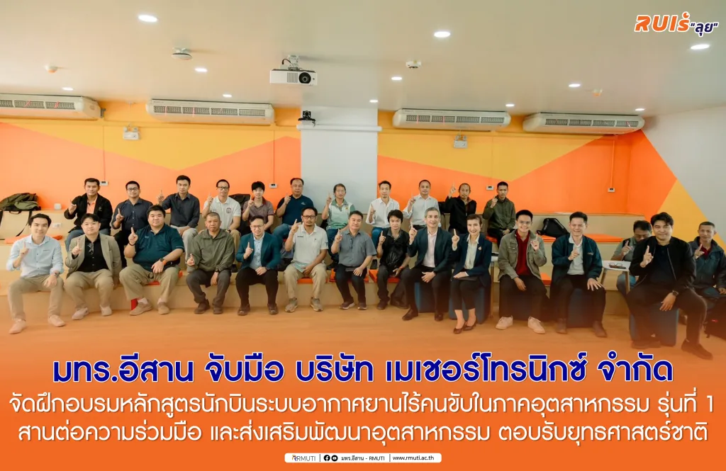 หลักสูตรนักบินระบบอากาศยานไร้คนขับในภาคอุตสาหกรรม จัดขึ้นภายใต้บันทึกบันทึกความเข้าใจ MOU ระหว่าง บริษัท เมเชอร์โทรนิกซ์ จำกัด และมหาวิทยาลัยเทคโนโลยีราชมงคลอีสาน เมื่อวันที่ 11 กุมภาพันธ์ 2568 เพื่อร่วมพัฒนาด้านเทคโนโลยี นวัตกรรม สร้างศักยภาพและโอกาสใหม่แก่นักศึกษาตลอดจนคณาจารย์ ซึ่งในการจัดฝึกอบรมครั้งนี้ทางบริษัทให้เกียรติส่งวิทยากรผู้เชี่ยวชาญ 3 ท่าน ได้แก่ คุณจิรายุ ไทยประเสิรฐ Industrial Group Product Manager, คุณสิทธิโชค ปานคล้าย Product Manager และ คุณดิศรณ์ หวังลาภอำนวย Senior Sales Engineer ในการฝึกอบรมเกี่ยวกับหลักการบินโดรน ข้อกําหนดการบินโดรนและสิ่งที่ต้องระมัดระวัง การใช้งานโดรนตรวจสอบความร้อนที่แผงโซล่าเชลล์การตรวจซ่อมบํารุงและออกแบบระบบไฟฟ้าโซล่าเชลล์ การวัดและวิเคราะห์ IV Curve เพื่อตรวจสอบประสิทธิภาพการเสื่อมสภาพ แนวทางการบํารุงรักษา ระบบไฟฟ้าเพื่อความปลอดภัยของระบบไฟฟ้าพลังงานแสงอาทิตย์ตามมาตรฐาน IEC ผ่านกิจกรรม Workshop ฝึกปฏิบัติการบินโดรนและการแก้ไขปัญหา เพื่อทดสอบความรู้การบินโดรน ให้แก้ผู้เข้ารับการฝึกอบรม รุ่นที่ 1 กว่า 30 คน หลังการอบรมภาคทฤษฎีอีกด้วย