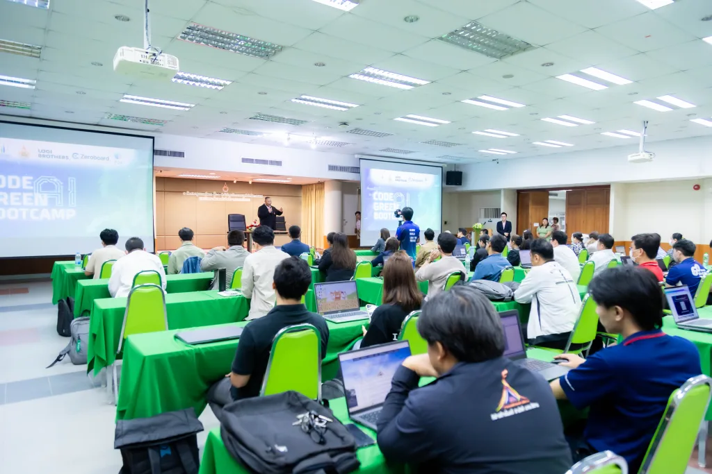 วันที่ 27 พฤษภาคม 2568 มหาวิทยาลัยเทคโนโลยีราชมงคลอีสาน โดย รองศาสตราจารย์ ดร.โฆษิต ศรีภูธร อธิการบดี มทร.อีสาน ให้เกียรติเป็นประธานเปิด “โครงการอบรม Code Green Al Bootcamp เสริมทักษะดิจิทัล สร้างสรรค์การเปลี่ยนแปลงสิ่งแวดล้อมอย่างยั่งยืน” จัดโดย สถาบันสหสรรพศาสตร์ โดยมี ผู้ช่วยศาสตราจารย์ ดร.อภิชาต ติรประเสริฐสิน รองอธิการบดีฝ่ายเทคโนโลยีดิจิทัล สารสนเทศ และกิจการสภามหาวิทยาลัย กล่าวรายงานวัตถุประสงค์โครงการ ณ ห้องประชุมมรกตอีสาน ชั้น 5 อาคารสํานักวิทยบริการและเทคโนโลยีสารสนเทศโดยมี ผู้เข้าร่วมโครงการจากสมาคมส่งเสริมและพัฒนากําลังคนสเต็มเพื่ออนาคต และหอการค้าจังหวัดนครราชสีมาและบุคลากร มทร.อีสาน เข้าร่วมกว่า 70 คน ทั้งนี้ โครงการดังกล่าวมีวัตถุประสงค์เพื่อเตรียมความพร้อมของกําลังคนในการเผชิญกับการเปลี่ยนแปลงของโลกในศตวรรษที่ 21 โดยมุ่งเน้นการบูรณาการองค์ความรู้ด้านเทคโนโลยีกับประเด็นด้านแวดล้อมและเป้าหมายการพัฒนาที่ยั่งยืน มีระยะเวลาอบรม 2 วัน ในระหว่างวันที่ 27 – 28 พฤษภาคม 2568 ซึ่งมีหัวข้อในการอบรม 3 หัวข้อ ได้แก่ Digital Decarbonization โดย Zeroboard (GHG Dashboard) หัวข้อ Climate Awareness & Action โดย P24 Solutions (Gamification) และหัวข้อ Coding & Al for the Planet โดย LogiBrothers (CODMOS)