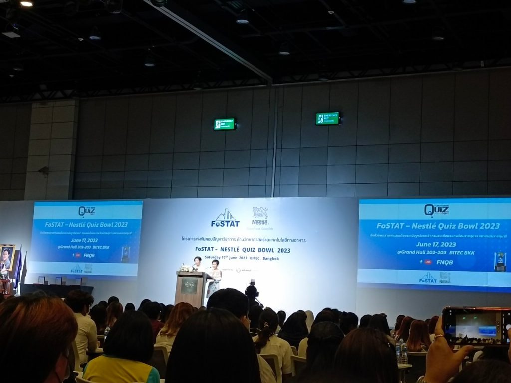 วันที่ 17 มิถุนายน 2566 มหาวิทยาลัยเทคโนโลยีราชมงคลอีสาน โดย แขนงวิชา นวัตกรรมและเทคโนโลยีการอาหาร คณะนวัตกรรมและเทคโนโลยีการเกษตร โดย อาจารย์ ดร.เยาวพา ความหมั่น หัวหน้าแขนงวิชา นวัตกรรมและเทคโนโลยีการอาหาร ผู้ช่วยศาสตราจารย์ ดร.ฐิติกร มหิสนันท์ และ อาจารย์ ดร.ณัฐพร ชัชวาลธาตรี นำนักศึกษาเข้าร่วมแข่งขันการตอบปัญหาทางด้านวิทยาศาสตร์และเทคโนโลยีการอาหาร “FOSTAT-Nestlé Quiz Bowl 2023” ณ ศูนย์นิทรรศการและการประชุมไบเทคบางนา กรุงเทพมหานคร ซึ่งมีมหาวิทยาลัย ส่งนักศึกษาเข้าร่วมการแข่งขันกว่า 61 ทีมทั่วประเทศ ทั้งนี้ นักศึกษา มทร.อีสาน สามารถทำผลงานคว้าอันดับ 10 ร่วมในการแข่งขันตอบปัญหาทางด้านวิทยาศาสตร์และเทคโนโลยีการอาหาร สำหรับทีมนักศึกษาที่ทำผลงานดีเยี่ยมในครั้งนี้ มีสมาชิก 4 คน ได้แก่