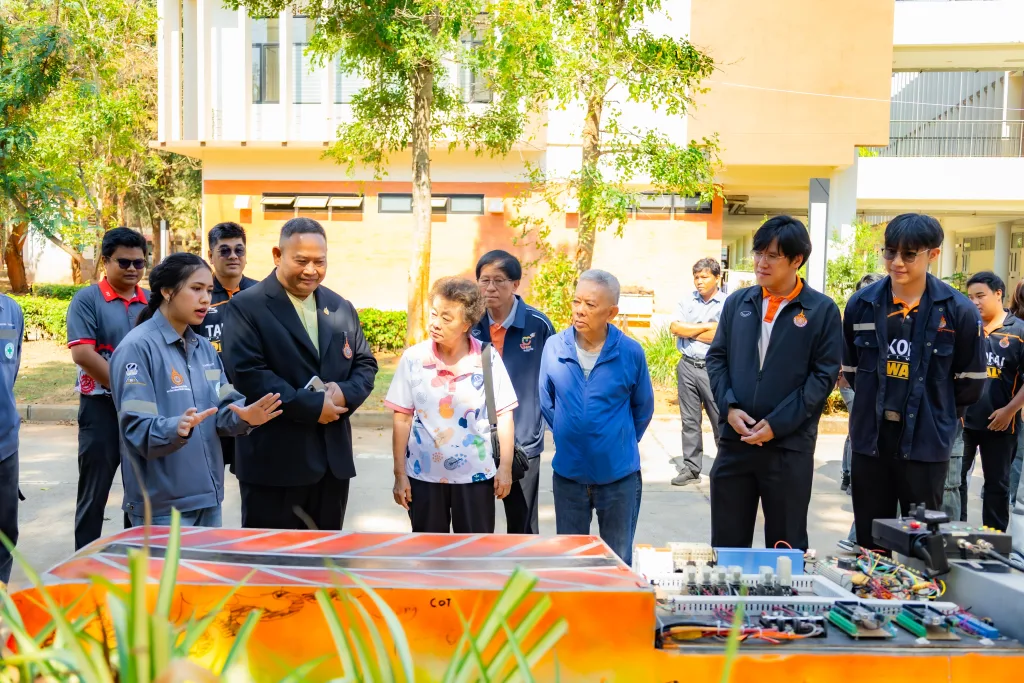 ผู้ช่วยศาสตราจารย์ชูชัย ต.ศิริวัฒนา รองประธานชมรมฯ และที่ปรึกษาอธิการบดี กล่าวว่า ได้เป็นตัวแทนอธิการบดี เข้ามาดูการเตรียมตัวเข้าร่วมการแข่งขันของนักศึกษาทั้งสองทีม ตั้งแต่การจัดสร้างอุปกรณ์และชิ้นส่วนต่าง ๆ การประกอบและทดสอบการทำงานของหัวรถจักร ทั้งที่พื้นที่ศูนย์การศึกษาหนองระเวียงและสนามแข่งขัน อพ.สธ. มหาวิทยาลัยเทคโนโลยีสุรนารี คลองไผ่ ซึ่งนักศึกษาทั้งสองทีมรวมทั้งทีมจากวิทยาเขตฯ ทุ่มเทการทำงานอย่างหนักในสนามแข่งขันทั้ง 3 วัน จนสามารถสร้างชื่อเสียงให้กับ มทร.อีสาน เชื่อมั่นว่าจากความตั้งใจนี้จะทำให้เกิดทักษะ ประสบการณ์ที่เป็นประโยชน์ต่อตัวนักศึกษาเอง และเกิดองค์ความรู้ต่อสาขาวิชาและคณะ ที่จะสามารถนำไปปรับปรุงในการแข่งขันในครั้งต่อไป และจากการออกแบบชิ้นส่วน อุปกรณ์ต่างๆด้วยตัวเองนี้ ก่อให้เกิดนวัตกรรมที่จะสามารถนำไปใช้งานต่อไปในอนาคตได้ ชมรมผู้ปกครองและครู มทร.อีสาน นครราชสีมา โดยคุณสืบศักดิ์ สิริจินดา ประธานชมรมฯ และคณะกรรมการชมรมฯ เห็นถึงความตั้งใจของนักศึกษาทุกคน จึงมอบทุนการศึกษาสนับสนุนนักศึกษาทั้งสองทีมในวันนี้