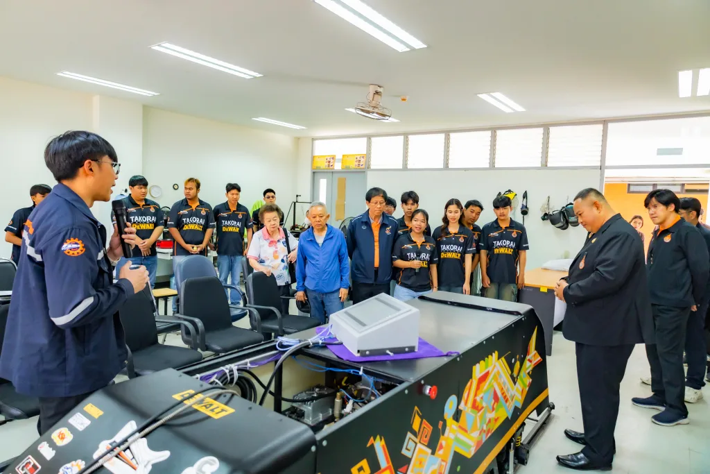 วันที่ 27 กุมภาพันธ์ 2568 คุณสืบศักดิ์ สิริจินดา ประธานชมรมผู้ปกครองและครู มหาวิทยาลัยเทคโนโลยีราชมงคลอีสาน นครราชสีมา พร้อมด้วย ผู้ช่วยศาสตราจารย์ชูชัย ต.ศิริวัฒนา รองประธานชมรมฯ ผู้ช่วยศาสตราจารย์ นงนุช ศรีสัตตบุตร เหรัญญิก ผู้ช่วยศาสตราจารย์ดร.ธวัชชัย จารุวงค์วิทยา กรรมการชมรม เข้าร่วมแสดงความยินดีกับคณาจารย์และนักศึกษา คณะระบบรางและการขนส่ง และคณะวิศวกรรมศาสตร์และเทคโนโลยีที่ได้รับรางวัลจากการแข่งขันออกแบบหัวรถจักรไฟฟ้า TRRN Railway Challenge 2025 ในพิธีมอบประกาศเกียรติคุณให้แก่คณาจารย์ผู้ควบคุมทีมและนักศึกษา ซึ่งมีรองศาสตราจารย์ ดร.โฆษิต ศรีภูธร อธิการบดีมหาวิทยาลัยเทคโนโลยีราชมงคลอีสาน เป็นประธานให้โอวาท กล่าวชื่นชม และมอบประกาศเกียรติคุณ