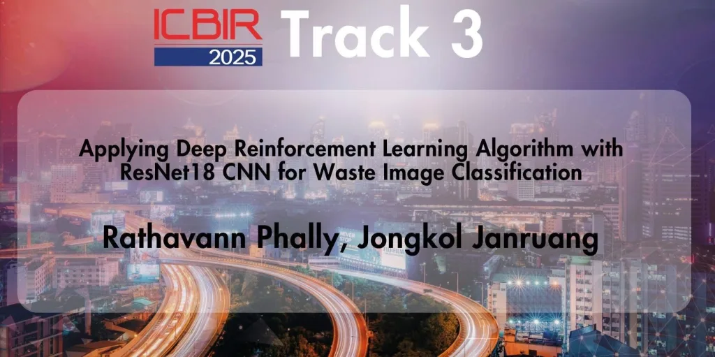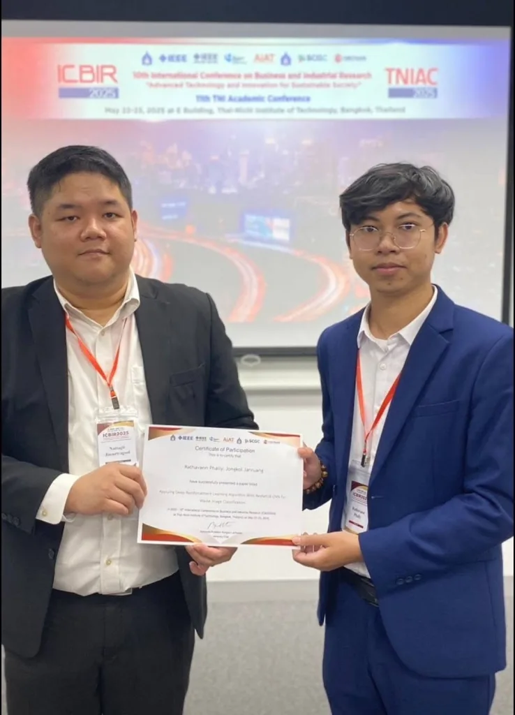 ผลปรากฏว่า Mr. Rathavann Phally ได้รับรางวัล Best Paper Award จากบทความวิจัยหัวข้อ “Applying Deep Reinforcement Learning Algorithm With ResNet18 CNN for Waste Image Classification” ซึ่งเป็นความภาคภูมิใจของสาขาวิชาและมหาวิทยาลัย สะท้อนถึงศักยภาพทางวิชาการของนักศึกษาระดับบัณฑิตศึกษาของมหาวิทยาลัยเทคโนโลยีราชมงคลอีสานในเวทีนานาชาติ