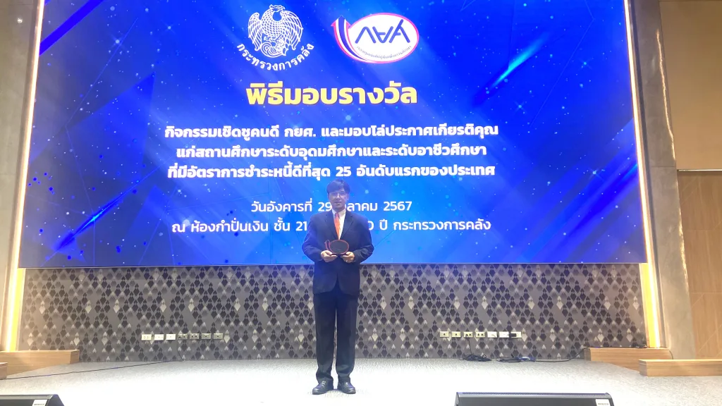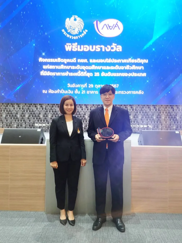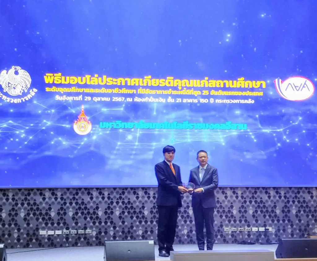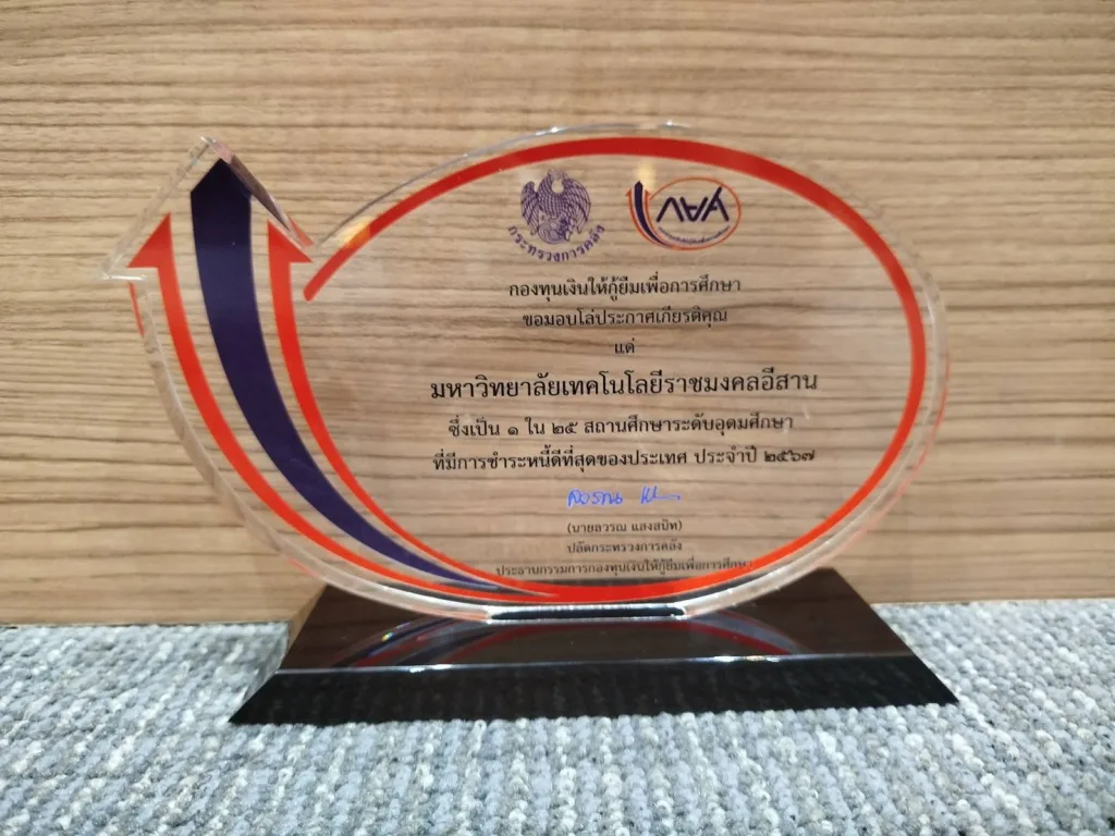 มทร.อีสาน สุดยอดสถานศึกษาระดับอุดมศึกษาและระดับอาชีวศึกษา ที่มีอัตราชำระหนี้ กยศ.ดีที่สุด 1 ใน 25 อันดับแรกของประเทศ 3 ปี ต่อเนื่อง (พ.ศ. 2565 – พ.ศ.2567) พร้อมเข้ารับมอบโล่เกียรติคุณจากปลัดกระทรวงการคลัง