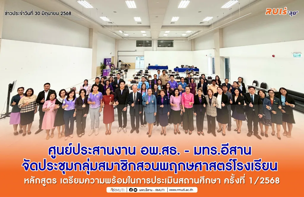 วันที่ 29 – 30 มิถุนายน 2568 ศูนย์ประสานงาน อพ.สธ. – มหาวิทยาลัยเทคโนโลยีราชมงคลอีสาน จัดประชุมกลุ่มสมาชิกสวนพฤกษศาสตร์โรงเรียน หลักสูตร เตรียมความพร้อมในการประเมินสถานศึกษา ครั้งที่ 1/2568 เพื่อให้ความรู้ ความเข้าใจ แนวทางการดำเนินงานตามนโยบาย ทิศทาง เป้าหมายของโครงการอนุรักษ์พันธุกรรมพืชฯ รวมถึงสร้างความเป็นมาตรฐานเดียวกันในการประเมินสถานศึกษา โดยมีนายอุดม ล้อมวงศ์พาณิช ที่ปรึกษา อพ.สธ. – มหาวิทยาลัยเทคโนโลยีราชมงคลอีสาน เป็นประธานเปิดการประชุมฯ ผู้ช่วยศาสตราจารย์ ดร.กุณฑิกา บุญสุภาวงศ์ หัวหน้าศูนย์ประสานงาน อพ.สธ. – มหาวิทยาลัยเทคโนโลยีราชมงคลอีสาน กล่าวรายงาน ณ ห้องประชุม 2 (37-401) ชั้น 4 อาคารสถาปัตยกรรมศาสตร์และศิลปกรรมสร้างสรรค์ (อาคาร 37) มหาวิทยาลัยเทคโนโลยีราชมงคลอีสาน ตำบลในเมือง อำเภอเมืองนครราชสีมา จังหวัดนครราชสีมา มีผู้เข้าร่วมฝึกอบรมประกอบด้วยผู้บริหาร ครู และบุคลากร เจ้าหน้าที่ จากสถานศึกษา จำนวน 17 แห่ง รวมผู้เข้าร่วมฝึกอบรม จำนวน 49 คน