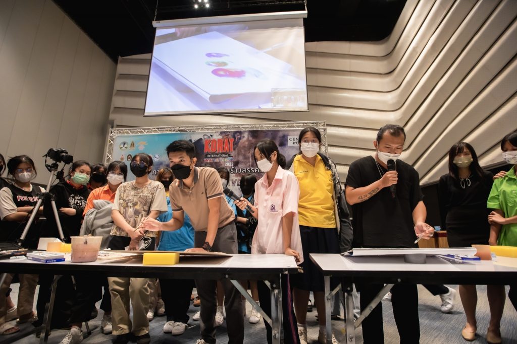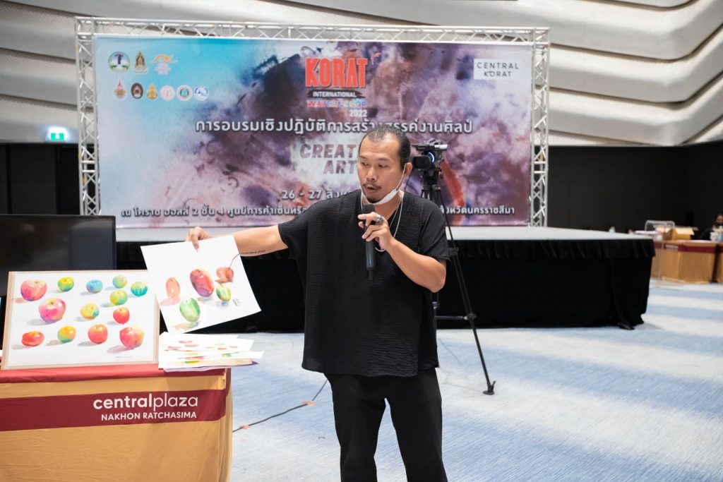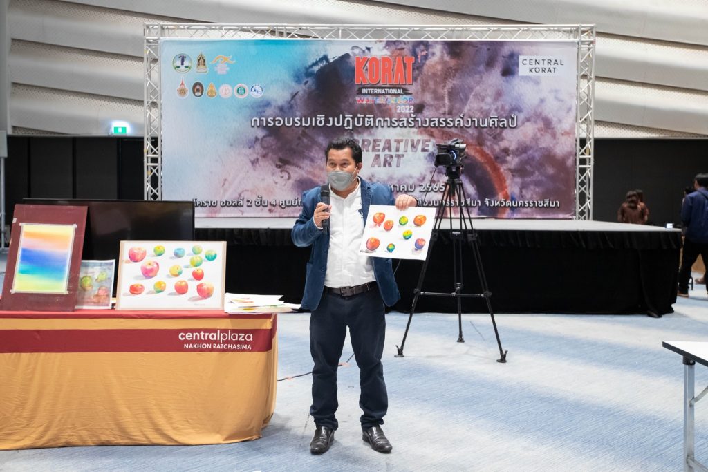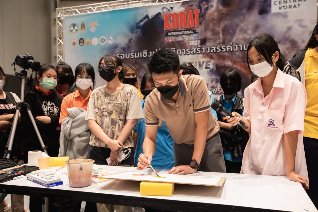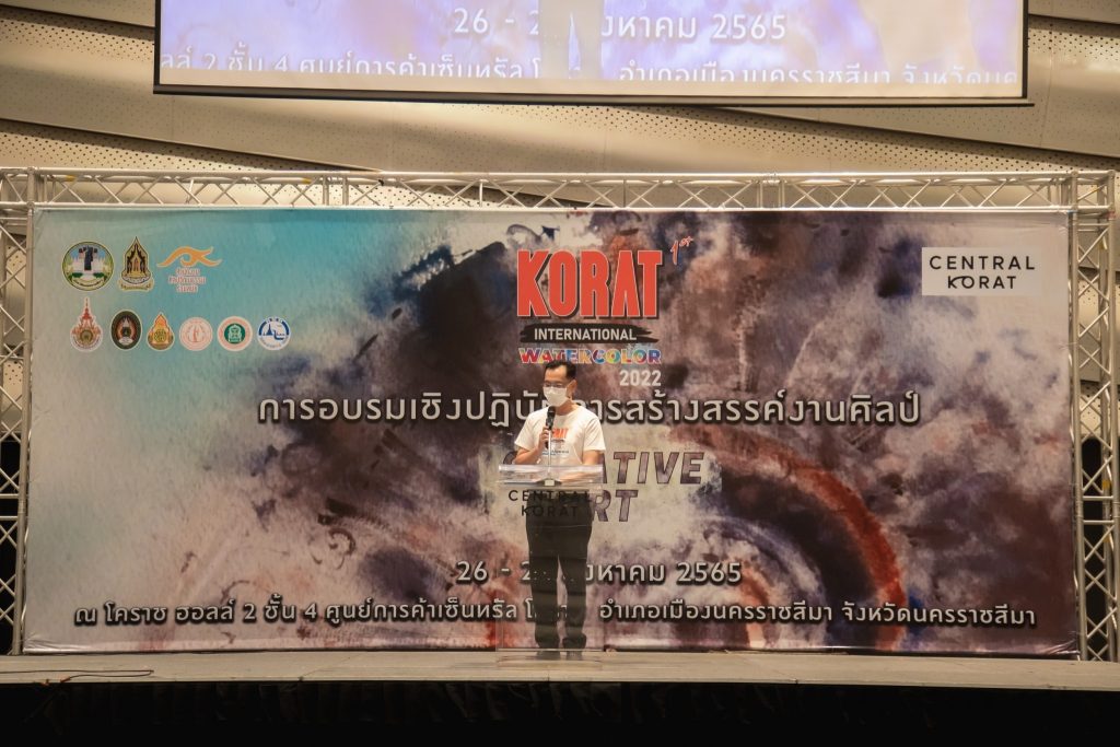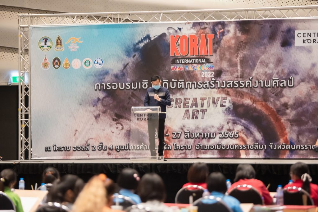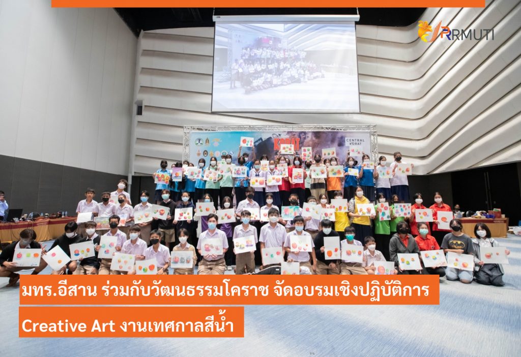 ระหว่างวันที่ 26 – 27 สิงหาคม 2565 มหาวิทยาลัยเทคโนโลยีราชมงคลอีสาน โดย คณะสถาปัตยกรรมและศิลปกรรมสร้างสรรค์ ร่วมกับ สำนักงานวัฒนธรรมจังหวัดนครราชสีมา และจังหวัดนครราชสีมา จัดโครงการอบรมเชิงปฏิบัติการสร้างสรรค์งานศิลป์ : Creative Art งานเทศกาลสีน้ำ ซึ่งเป็นกิจกรรมย่อยส่งเสริมและพัฒนาเมืองศิลปะ (Korat Art City) ภายใต้โครงการพัฒนาด้านการท่องเที่ยวและบริการ ณ ฮอลล์ ๒ ชั้น ๔ ศูนย์การค้าเซ็นทรัล โคราช อำเภอเมืองนครราชสีมา จังหวัดนครราชสีมา โดยได้รับเกียรติจาก นายสมเกียรติ วิริยะกุลนันท์ รองผู้ว่าราชการจังหวัดนครราชสีมา เป็นประธานกล่าวเปิดงาน และนายไชยนันท์ แสงทอง วัฒนธรรมจังหวัดนครราชสีมา กล่าวรายงานวัตถุประสงค์การจัดโครงการ ซึ่งมีคณาจารย์จากคณะสถาปัตยกรรมและศิลปกรรมสร้างสรรค์ อาจารย์จากวิทยาลัยเพาะช่าง เป็นวิทยากรให้ความรู้ โดยมีนักเรียน นักศึกษา ในภาคอีสาน เข้าร่วมการอบรมกว่า 100 คน