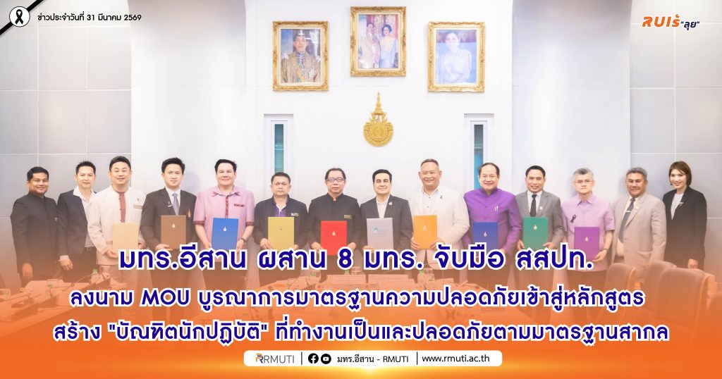 มทร.อีสาน ผสาน 8 มทร. จับมือ สสปท. ลงนาม MOU บูรณาการมาตรฐานความปลอดภัยเข้าสู่หลักสูตร สร้าง “บัณฑิตนักปฏิบัติ” ที่ทำงานเป็นและปลอดภัยตามมาตรฐานสากล
