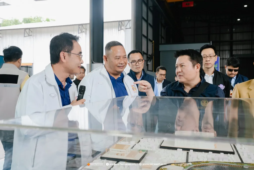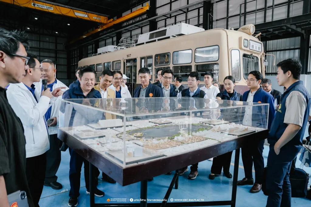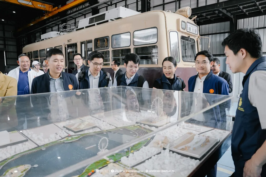 ในภาพรวมที่ประชุมได้รายงานผลการดำเนินว่า ขณะนี้ได้ดำเนินการคืบหน้าไปอีกขั้นโดยได้ทำการก่อสร้างระบบรางในพื้นที่ มทร.อีสาน วิทยาเขตขอนแก่น รวมระยะทางกว่า 450 เมตร พร้อมปรับผังการจราจรและพื้นที่ใช้งานชั่วคราว เพื่อรองรับการติดตั้งรางในระยะทดลอง ขับเคลื่อนขอนแก่นสู่ SMART CITY เนื่องจากจังหวัดขอนแก่นเป็นเมืองยุทธศาสตร์ที่อยู่ในเส้นทางรถไฟไทย – จีน และมีนโยบาย Smart City การพัฒนาระบบรางช่วยยกระดับเศรษฐกิจฐานราก สร้างงานในท้องถิ่น และลดความแออัดในเมืองใหญ่โดย มทร.อีสาน วิทยาเขตขอนแก่น มีบทบาทสำคัญในการวิจัยและออกแบบต้นแบบรถไฟฟ้ารางเบา เน้นการใช้อะไหล่ที่ผลิตในประเทศเป็นหลักลดต้นทุนจาก 90 ล้านบาท เหลือ 70 ล้านบาทต่อขบวน และสร้าง Supply Chain ภายในประเทศ ก่อให้เกิดการจ้างงานและหมุนเวียนรายได้ในท้องถิ่นส่งผลกระทบเชิงบวกต่อประเทศเพราะการผลิตรถไฟฟ้าในประเทศช่วยลดการนำเข้า สร้างงานในท้องถิ่น ประชากรไม่ต้องย้ายไปทำงานในเมืองใหญ่ เกิดการกระจายตัวของอุตสาหกรรม ลดความแออัดในกรุงเทพ และเสริมสร้างความสามารถในการแข่งขันของประเทศในระยะยาว คาดวิ่งจริงในปลายปีนี้ จากนั้น อธิการบดี มทร.อีสาน ได้นำเยี่ยมชมผลงานวิจัยและนวัตกรรมด้านระบบราง Tram รุ่น Hiroden-907 ที่ได้รับมอบจากเทศบาลนครฮิโรชิมา ประเทศญี่ปุ่น รางตัวอย่างเพื่อใช้ทดสอบการวิ่งและการใช้งานขบวนรถไฟฟ้ารางเบา งานวิจัยต้นแบบรถไฟ LRT รถบัส EV และรถ London แท๊กซี่ ของวิทยาเขตขอนแก่น โดยมี ผศ.ดร.ศุภฤกษ์ ชามงคลประดิษฐ์ คณบดีคณะวิศวกรรมศาสตร์ อาจารย์ ดร. ณรงค์ สีหาจ่อง ผู้อำนวยการศูนย์ฝึกอบรมระบบขนส่งทางราง เป็นผู้บรรยายให้ข้อมูล เพื่อเน้นย้ำถึงศักยภาพและมาตรฐานความเข้มแข็งด้านวิชาการและงานวิจัย ของ มทร.อีสาน วิทยาเขตขอนแก่น ณ อาคารปฏิบัติการซ่อมบำรุงรถไฟ DEPOT โรงจอดและซ่อมบำรุงรถ Tram และ LRT คณะวิศวกรรมศาสตร์ บรรยากาศการเยี่ยมชมเป็นไปด้วยความอบอุ่นมีการแลกเปลี่ยนเรียนรู้ การสอบถามข้อมูลงานวิจัย เทคโนโลยีที่เกี่ยวข้องในการจัดสร้างรถไฟฟ้ารางเบาพร้อมถ่ายภาพเป็นที่ระลึก