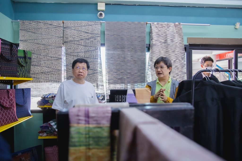 สำหรับช่วงบ่าย นายแพทย์ธีระเกียรติ เจริญเศรษฐศิลป์ นายกสภา มทร.อีสาน ได้ลงพื้นที่ ณ อำเภอปักธงชัย พร้อมคณะผู้บริหาร มทร.อีสาน เพื่อเยี่ยมชมและศึกษาแนวทางเพื่อต่อยอดหาความเป็นไปได้ ระหว่างผู้ประกอบการในพื้นที่กับ มทร.อีสาน ในเรื่อง การผลิตและเทคโนโลยีผ้าไหมปักธงชัย โดยมี อาจารย์ ดร.อนิรุธ พิพัฒน์ประภา คณบดีคณะบริหารธุรกิจ ได้นำเยี่ยมชมพื้นที่ ทั้งนี้ มทร.อีสาน มีทั้งองค์ความรู้ เทคโนโลยี และบุคลากร ร่วมถึงได้มีการเรียนการสอนในสาขาที่เกี่ยวข้องหลายสาขา เช่น สาขาพืชศาสตร์ สิ่งทอและการออกแบบ สาขาวิชาพืชศาสตร์ คณะเกษตรศาตร์และเทคโนโลยี มทร.อีสาน วิทยาเขตสุรินทร์ สาขาวิชาพืชศาสตร์ คณะทรัพยากรธรรมชาติ มทร.อีสาน วิทยาเขตสกลนคร คณะบริหารธุรกิจ นครราชสีมา ในการร่วมให้ความรู้ด้านการจัดการธุรกิจในรูปแบบต่างๆ คณะวิศวกรรมศาสตร์ มทร.อีสาน วิทยาเขตขอนแก่น เป็นต้น ซึ่งพร้อมที่จะผนึกกำลังในการให้บริการด้านวิชาการแก่ชุมชน และสังคม เพื่อเกิดการพัฒนาอย่างยั่งยืนต่อไป