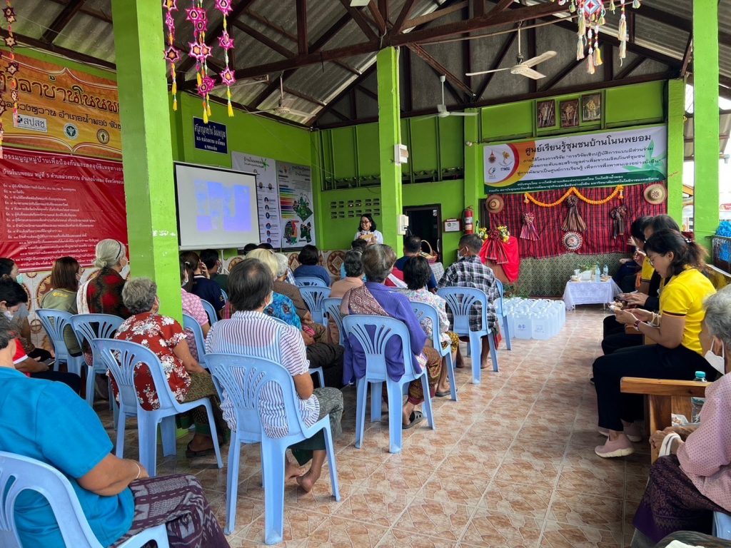 วันที่ 26 ตุลาคม 2565 มทร.อีสาน โดย ผู้ช่วยศาสตราจารย์ ดร.บุญญาพร ดวงสา ผู้อำนวยการสถาบันชุณหะวัณฯ ในฐานะหัวหน้าโครงการ นำทีมคณะวิจัยจาก มทร.อีสาน จัดกิจกรรมเปิดศูนย์การเรียนรู้ชุมชนต้นแบบบ้านโนนพยอม ภายใต้โครงการวิจัยเชิงปฏิบัติการแบบมีส่วนร่วมเพื่อยกระดับและสร้างมูลค่าเพิ่มจากผลิตภัณฑ์ชุมชน สู่การพัฒนาเป็นศูนย์การเรียนรู้เพื่อการพึ่งพาตนเองอย่างยั่งยืน บ้านโนนพยอม ต.ม่วงหวาน อ.น้ำพอง จ.ขอนแก่น